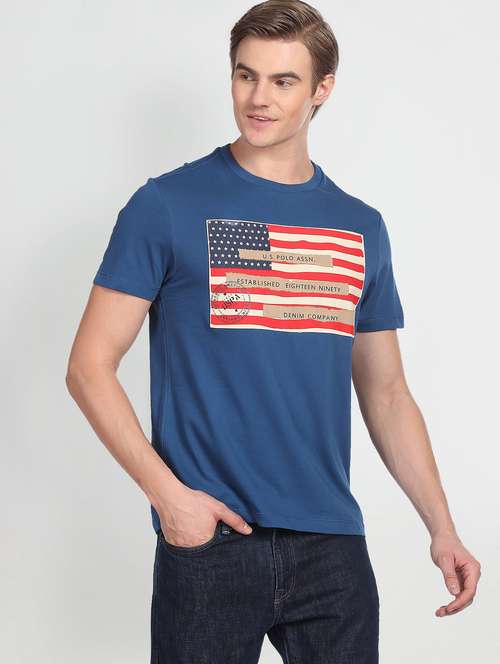 blue cotton chest print tshirt