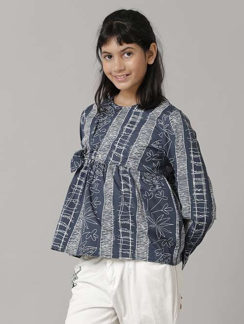 - » girls printed round neck peplum top