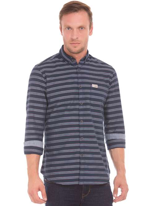 navy blue striped casual shirt