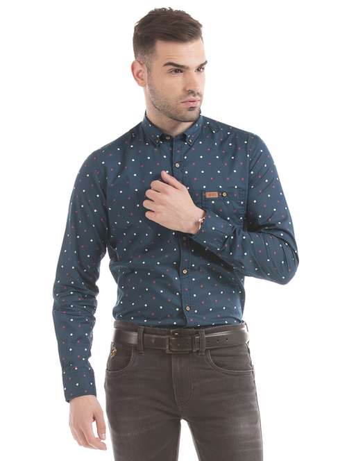 navy blue printed casual shirt