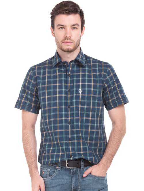 navy blue checkered casual shirt