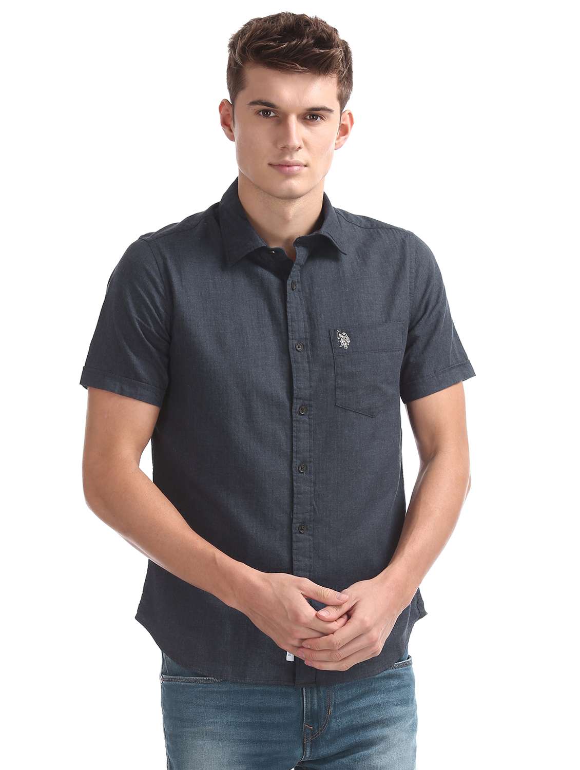 navy blue solid casual shirt