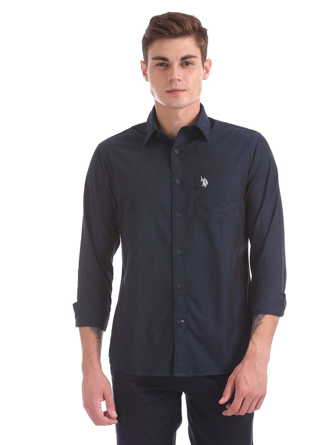 - » navy blue solid casual shirt