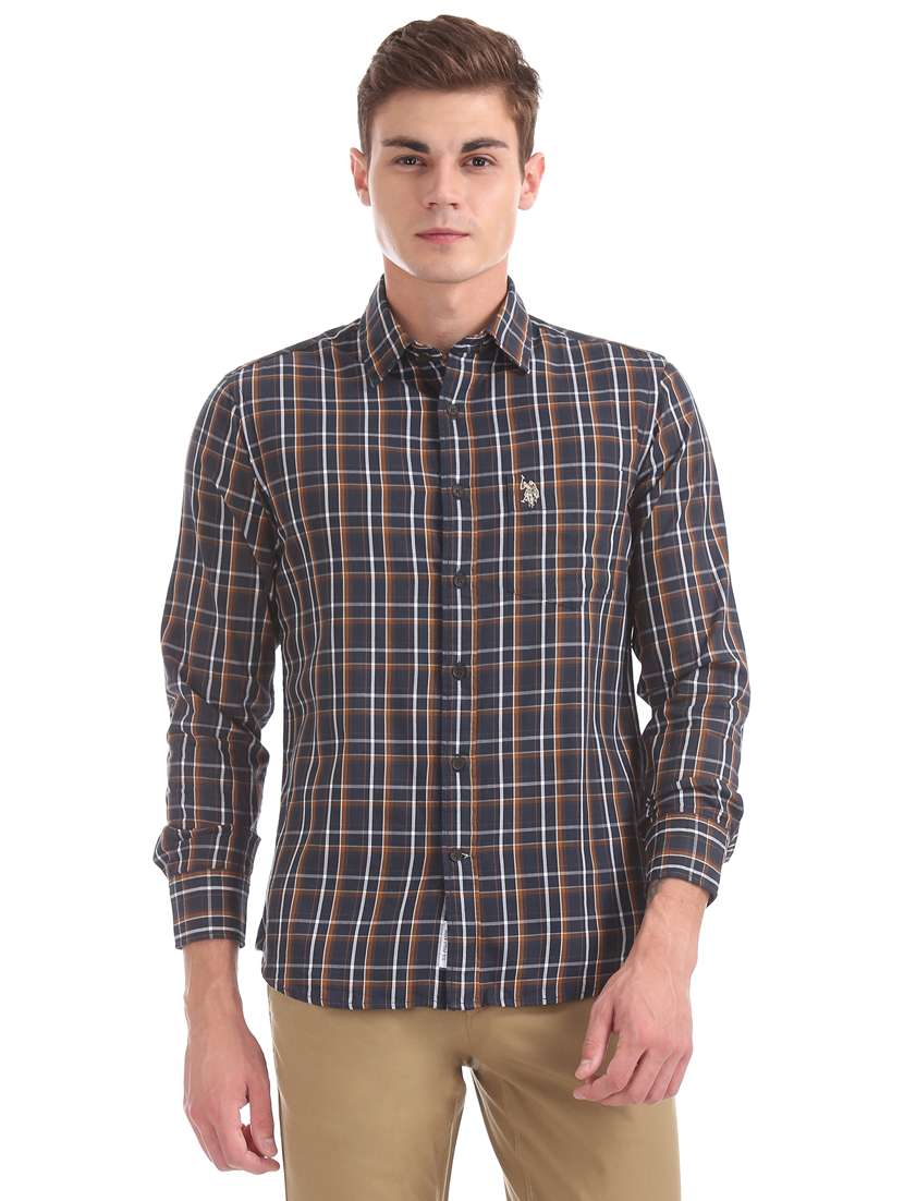 navy blue checkered casual shirt - 17562172 - Very Small Image - 1