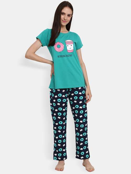 round neck printed nightwear pajama set