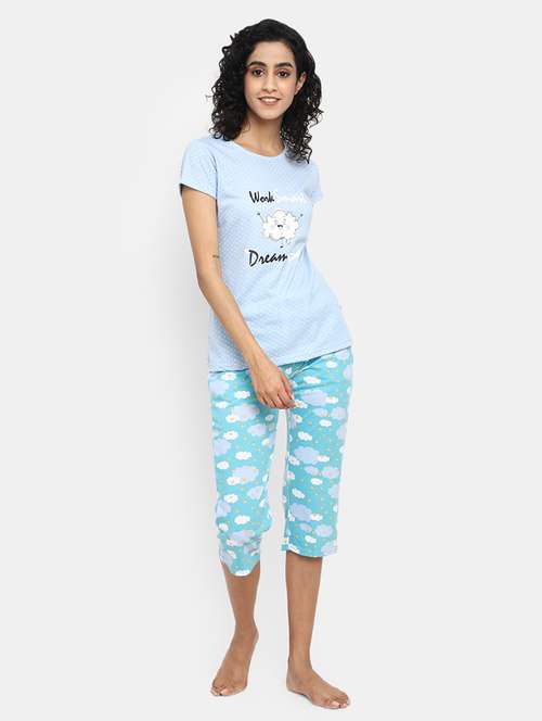 blue cotton printed capri set