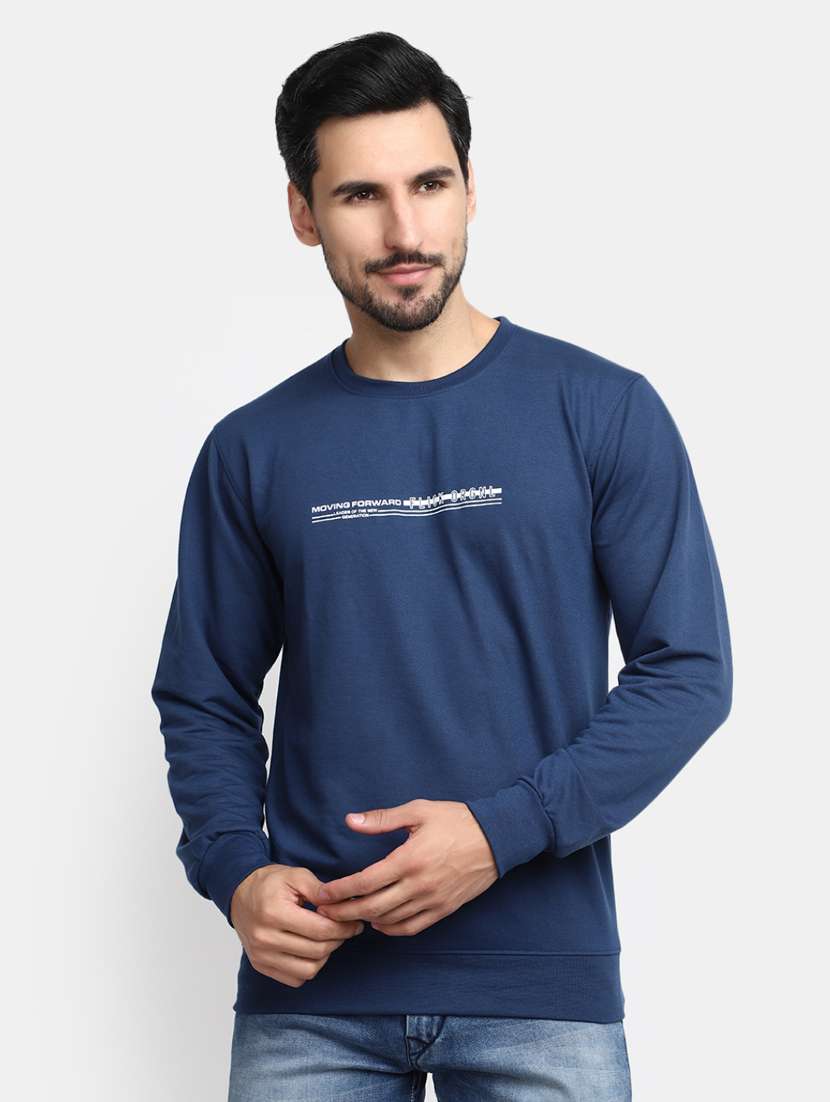 - » blue typographic print round neck t-shirt