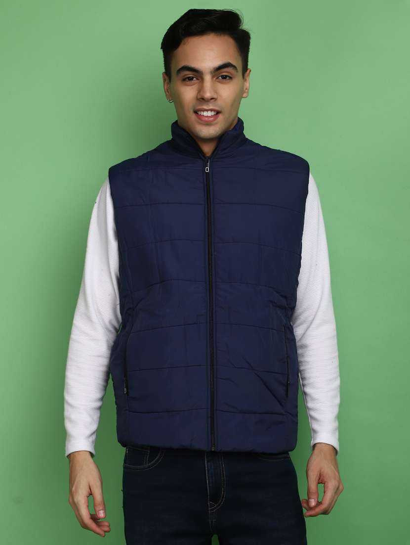 - » solid blue sleeveless casual jacket