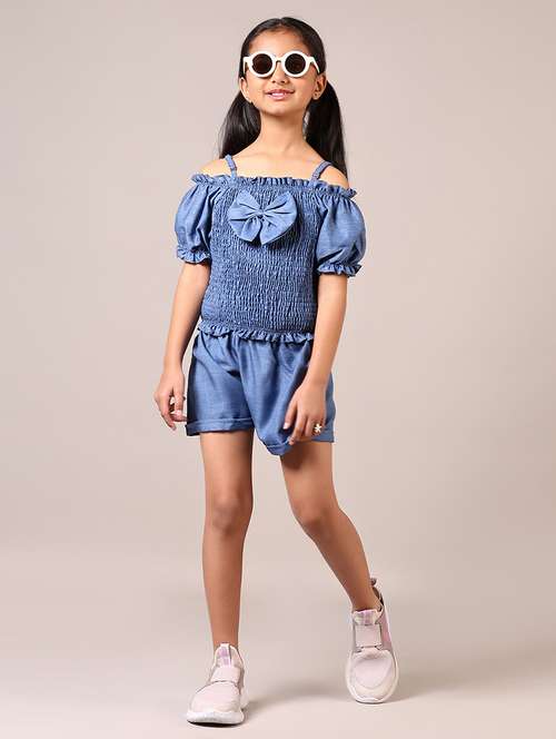 - Browse through the huge collection of casual wear twin sets and jump suits for girls in blue colors and designs to make your young lady look the fashionista that she is.