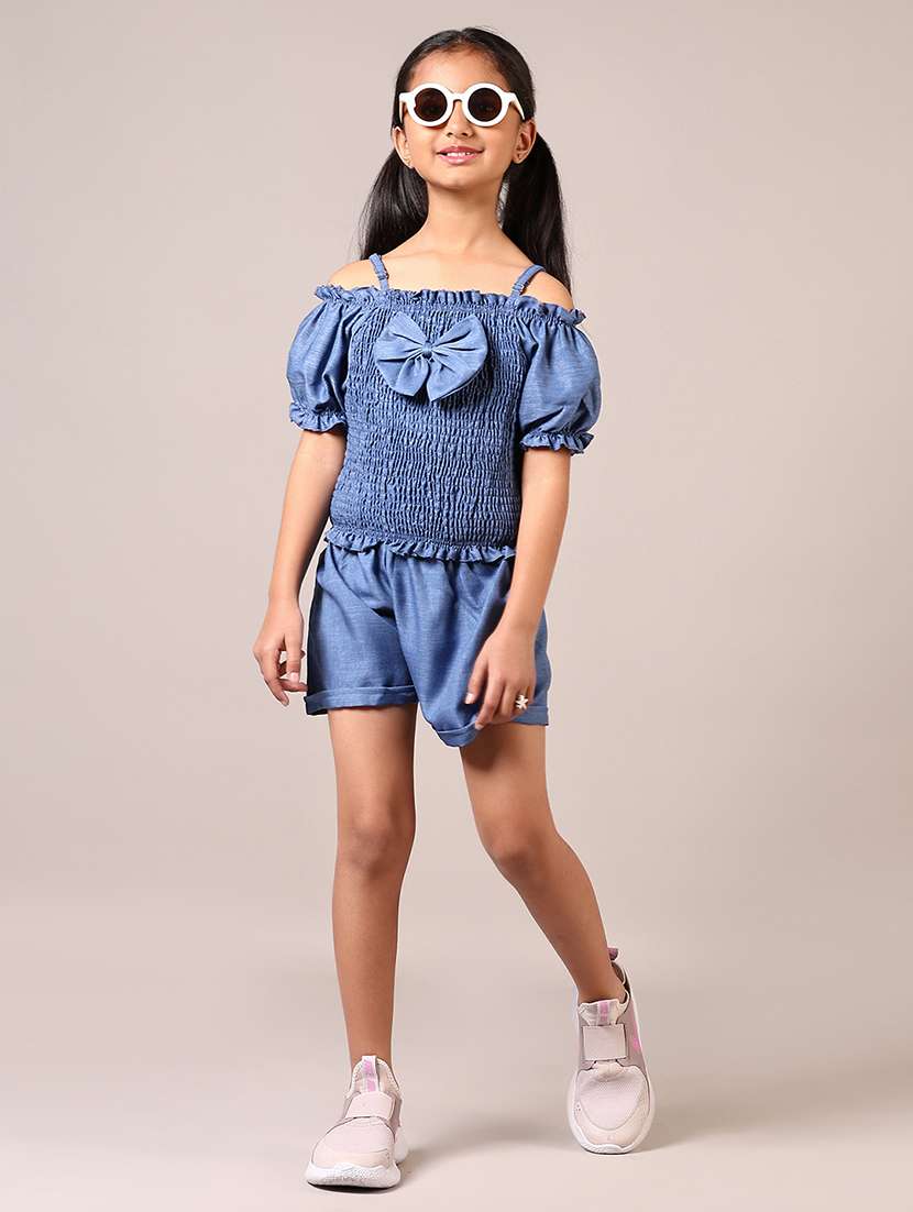 girls solid shorts twin sets