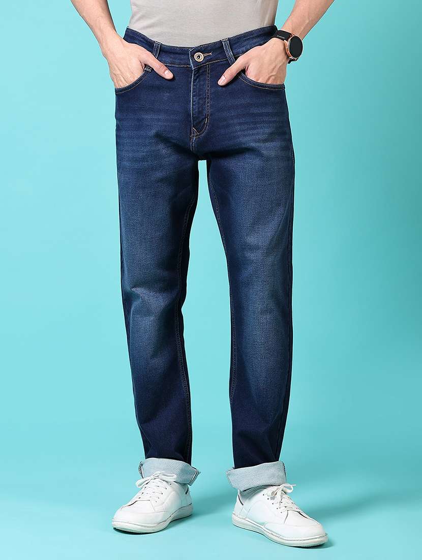 men mid rise plain jeans