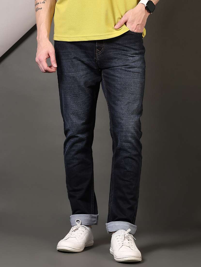 men washed mid rise jeans