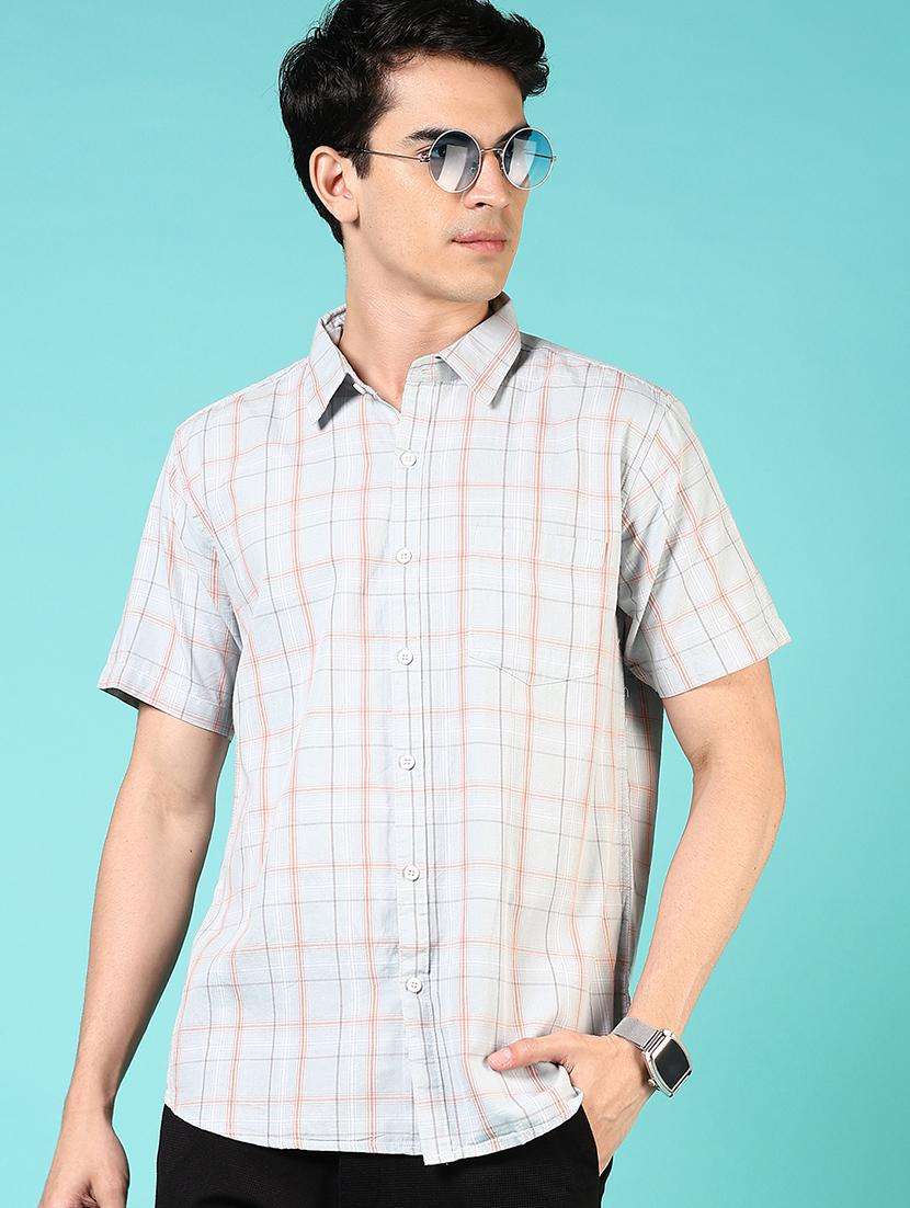 men checkered short sleeve regular fit casual shirt
