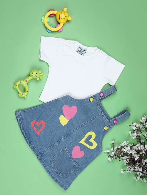 girls printed dungaree dress with t-shirt