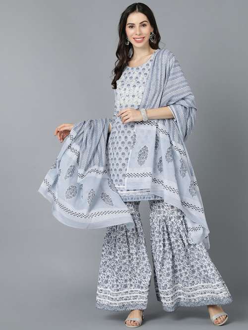 printed kurta sharara set with dupatta   - 19817205 - Very Small Image - 1