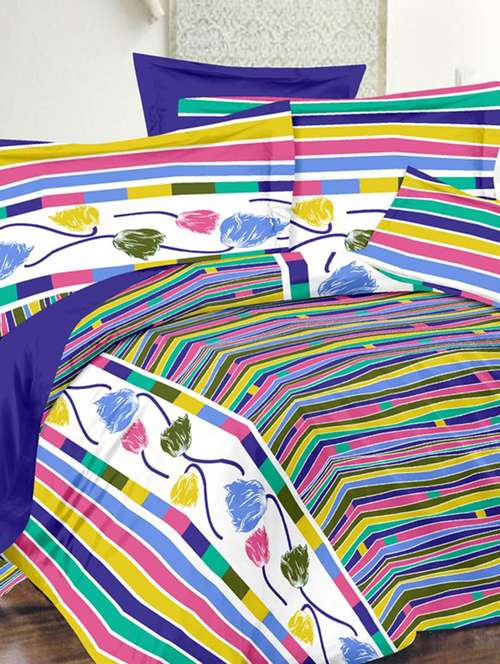 valtellina floral blue cotton double bed sheet with 2 pillow cover - tc-250