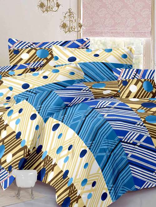 - » valtellina polka blue cotton double bed sheet with 2 pillow cover - tc-250