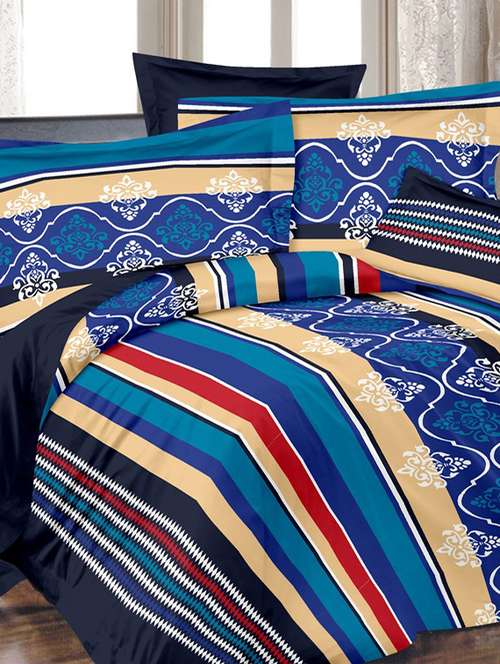 - » valtellina traditional blue cotton double bed sheet with 2 pillow cover - tc-250