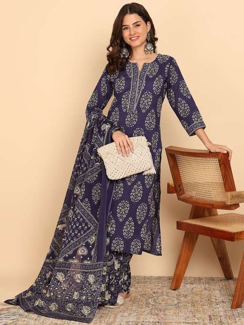 - Find gorgeous sets of ethnic wears in trending designs in blue colors suitable for casual wear of occasions.