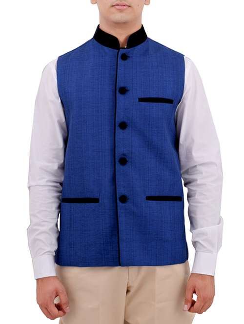 blue cotton nehru jacket