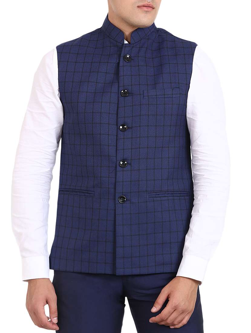 blue cotton nehru jacket