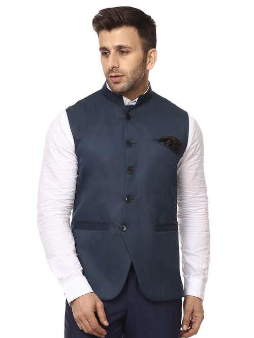 - » solid blue nehru jacket