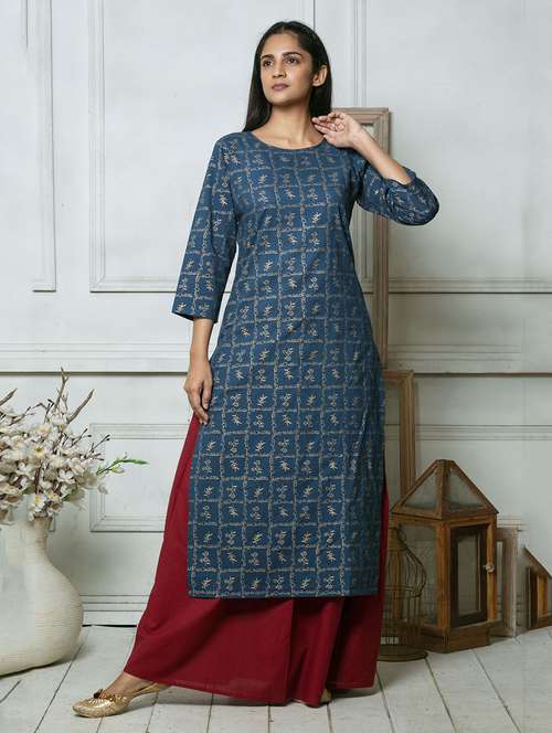 blue printed straight kurta and palazzo set