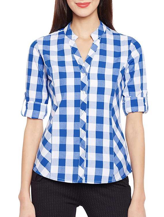 checkered mandarin collar shirt