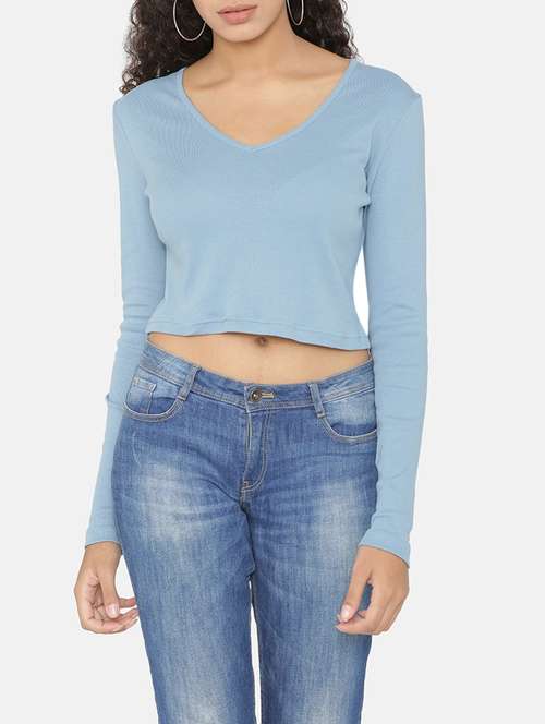 - » powder blue long sleeved crop top