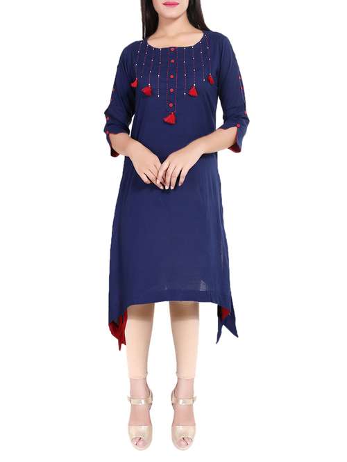 navy embellished asymmetrical hemline kurta - 13857660 - Very Small Image - 1