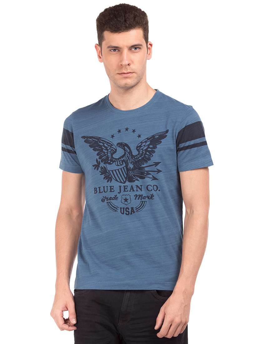 blue printed t-shirt