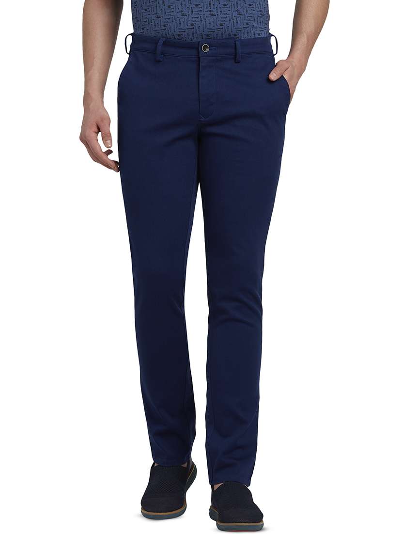 - » navy blue solid flat front casual trouser