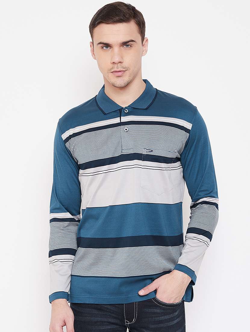 blue striped polo t-shirt