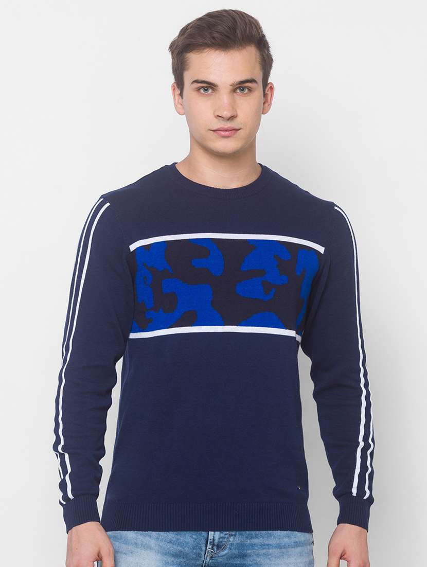 - » blue printed pullover