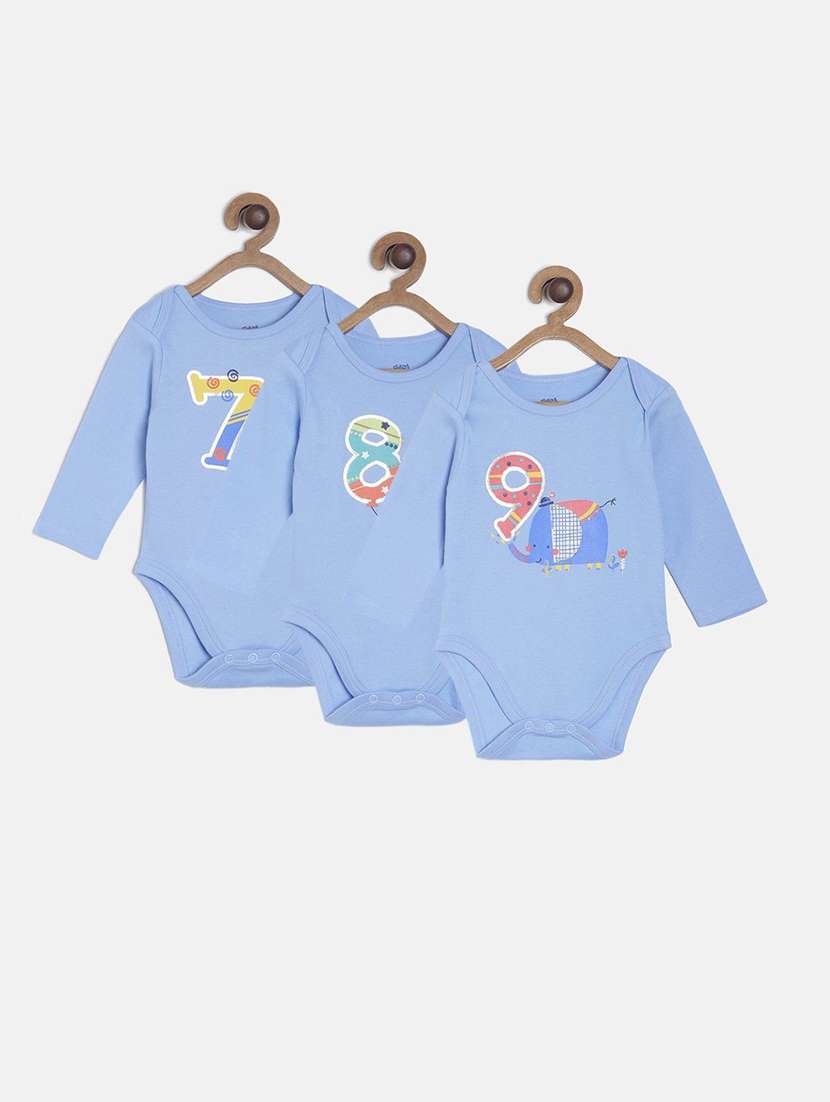 - » pack of 3 blue printed rompers