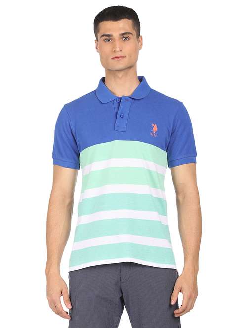 blue striped polo t-shirt