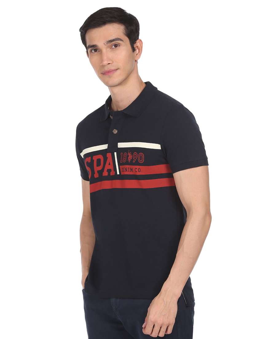 navy-blue chest-printed polo t-shirt