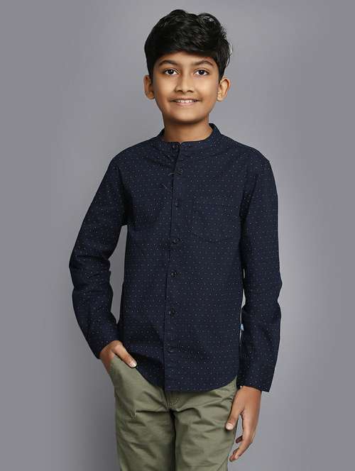 - » boys navy blue printed cotton shirt