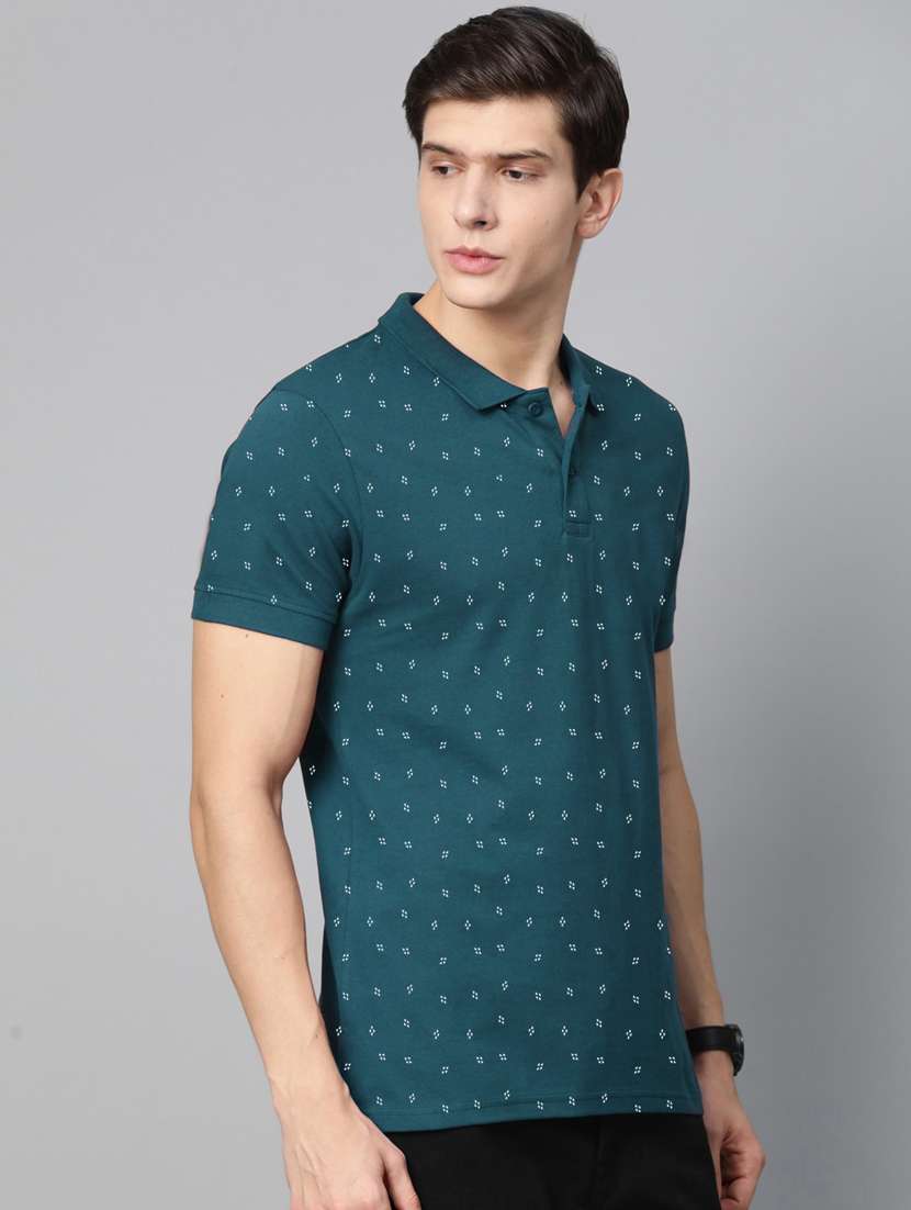 teal blue printed short sleeve polo t-shirts