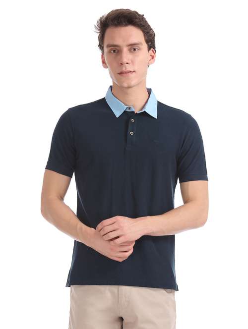navy blue solid polo t-shirt  - 17630712 - Very Small Image - 1