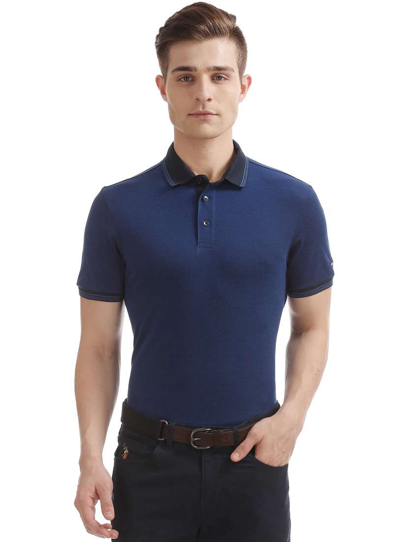 navy blue solid polo t-shirt
