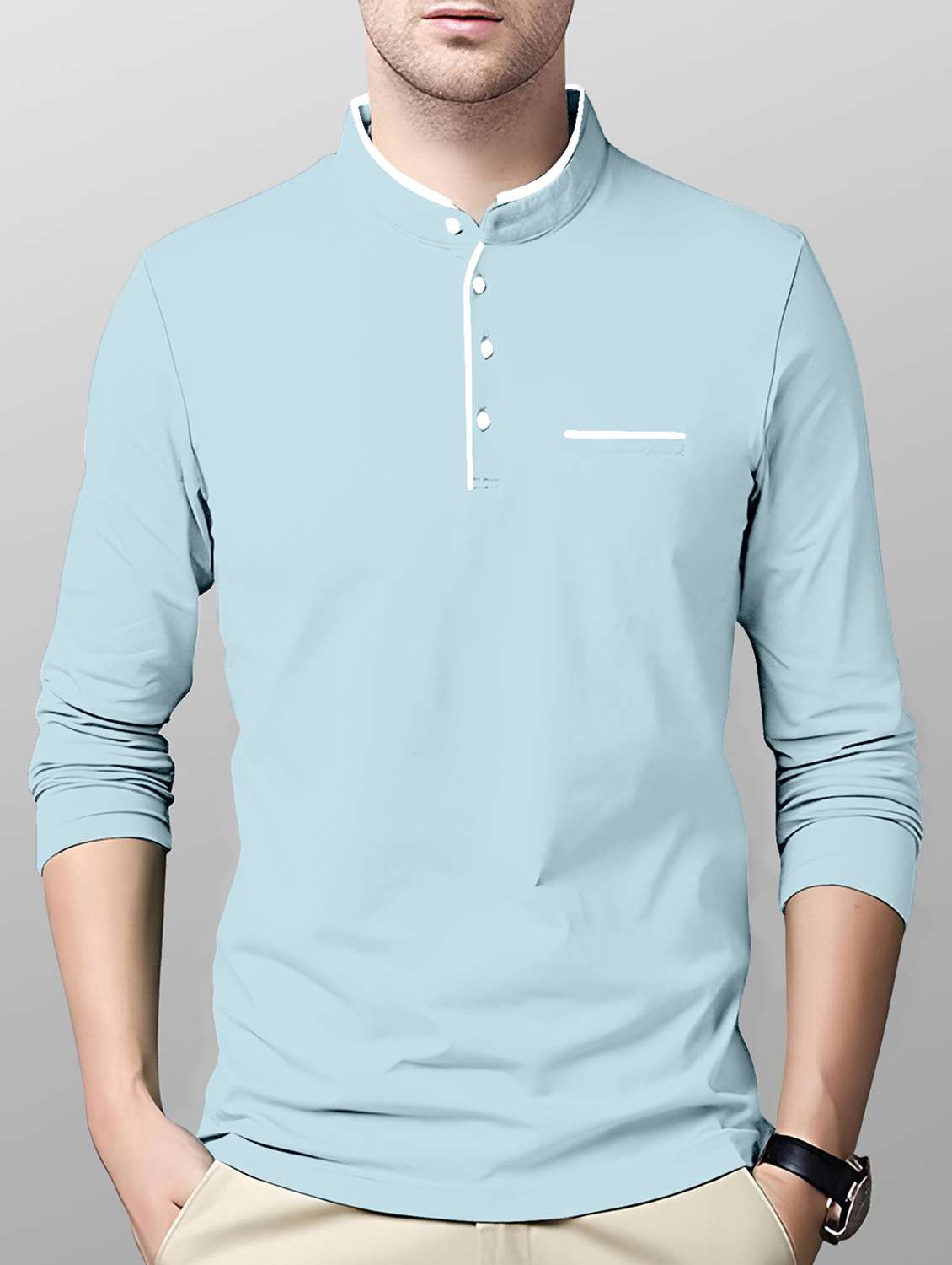 - » mandarin neck solid regular t-shirt