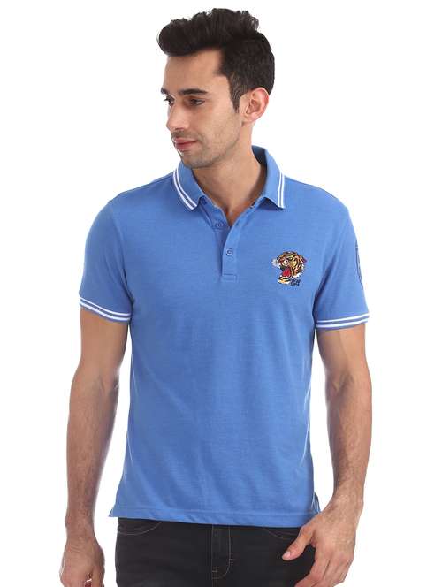 - » blue self design polo t-shirt