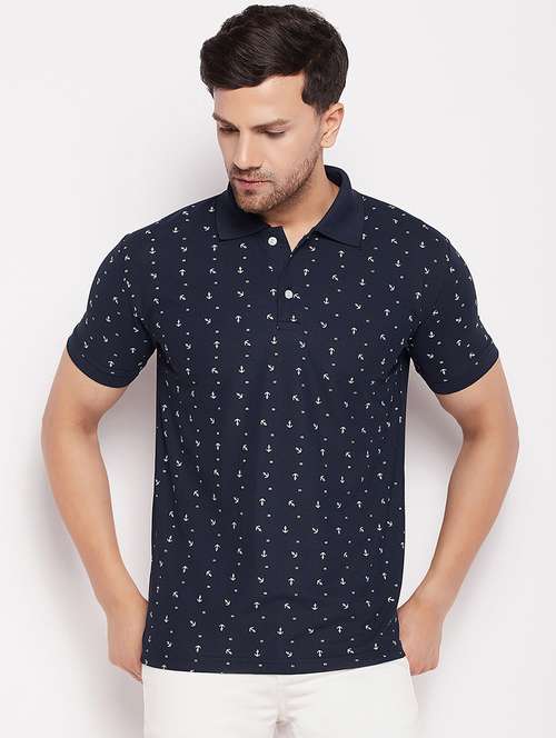 - » navy blue printed polo t-shirt