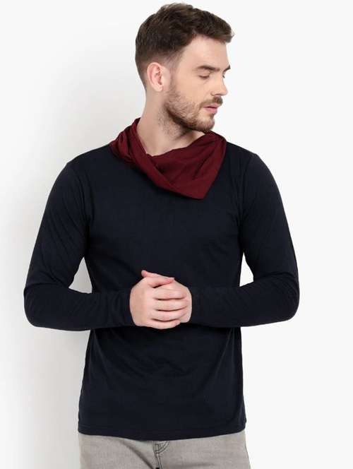 - » navy blue solid long sleeves cowl neck t-shirt