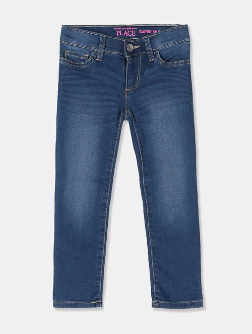 blue cotton blend washed jean
