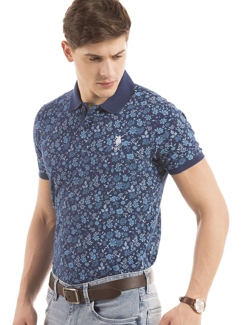 navy blue floral polo t-shirt
