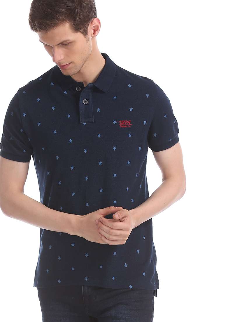 navy blue printed polo t-shirt - 17662535 - Very Small Image - 1
