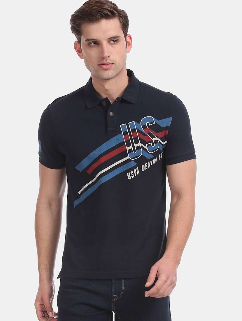 navy blue printed polo t-shirt