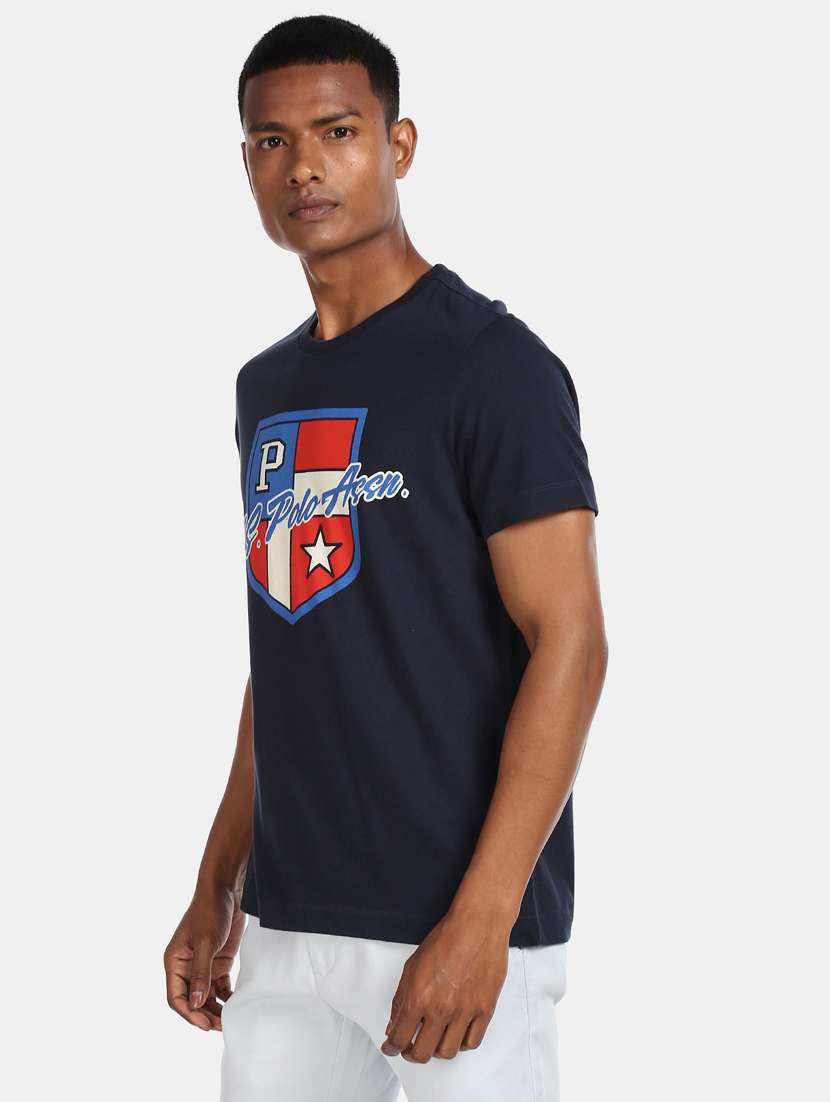 navy-blue chest-printed t-shirt